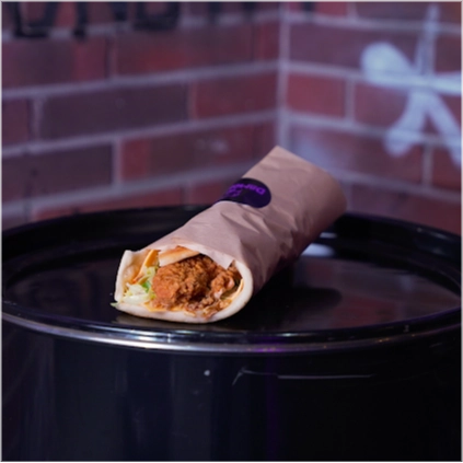 Gevuld met spicy crispy tenders, cheddar kaas, sla, bosuitjes, gebakken uitjes, jalapenos Damonstasaus en Monsta saus0
