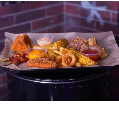 Alles in een box:2 Chunks, 2 Monsta wings, 1 chicken strips, 1 maisrepen, 1 Street stix (kipspiesjes) en 1 uien ringen,friet, Damonsta saus, monsta saus, monsta cheese dip, gebakken uitjes. 0